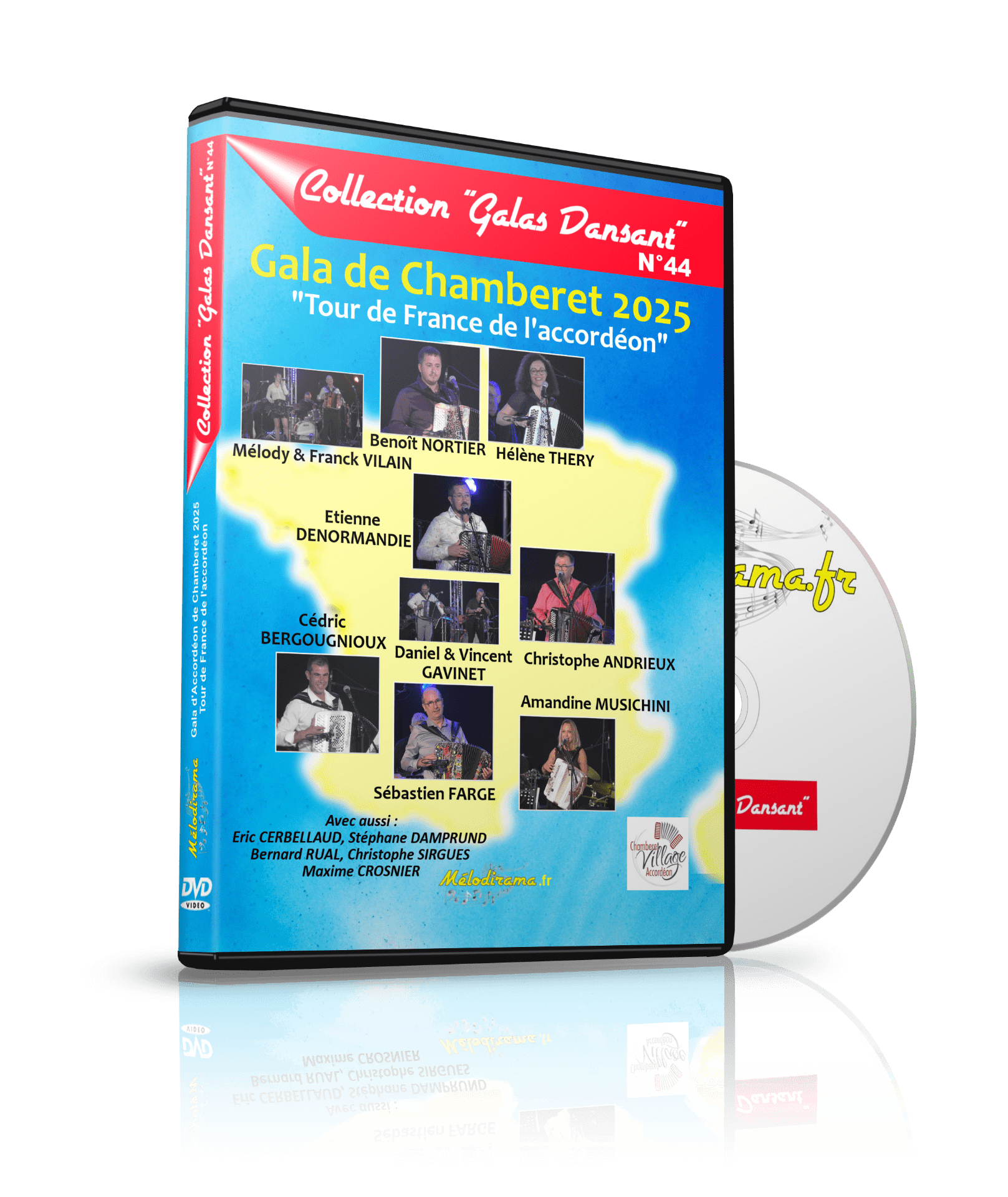 DVD Gala de Chamberet 2025 "Tour de France de l'accordéon" Avec Etienne DENORMANIE, Benoît NORTIER, Hélène THERY, Sébastien FARGES, Mélody & Franck VILAIN, Daniel & Vincent GAVINET, Christophe ANDRIEUX, Cédric BERGOUNIOUX, Amandine MUSICHINI